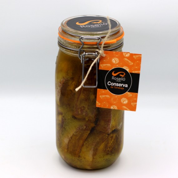 Costilla de cerdo adobada, frita y conservada en aceite de oliva virgen extra.